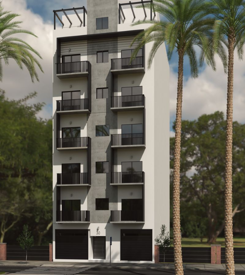 Representación clara y realista de bloques residenciales para evaluar composición, alturas y ritmo visual.